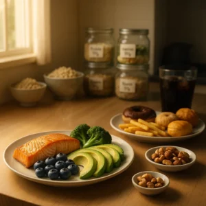 Alimentação funcional não é só comer saudável: são alimentos que entregam um benefício extra para a saúde, ajudando seu cérebro a trabalhar melhor. Ao escolher alimentos ricos em ômega-3, antioxidantes, vitamina E e sulforafano, você protege as conexões entre os neurônios, melhora a circulação sanguínea no cérebro e mantém a memória e o raciocínio afiados. Esses nutrientes fortalecem a sinapse, aquela troca de informações que acontece entre as células nervosas — é como dar uma recauchutagem no cérebro para que ele funcione como novo.