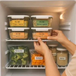 Regra geral, as marmitas podem ser congeladas por até 3 meses sem perder qualidade. Para assegurar isso, faça uma etiqueta com a data de preparo e a descrição do conteúdo. Isso facilita o controle e evita o desperdício de alimentos que ficam esquecidos no fundo do freezer.
