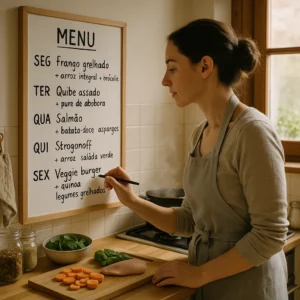 Uma boa estratégia é escolher 5 a 7 pratos principais variados para a semana, balanceando as fontes de proteína, carboidratos e vegetais. Por exemplo, você pode optar por: