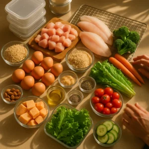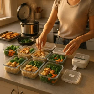 Quer montar marmitas saudáveis para controle de insulina e ganhar tempo no restante da semana? Faça o que as vizinhas mais experientes fazem: produção em lote no domingo. Aqui vai o passo a passo para preparar 15 marmitas em cerca de 2 horas.