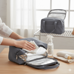- Limpeza após cada uso: Após cada transporte, limpe a bolsa internamente. Use um pano úmido com água e sabão neutro para remover qualquer resíduo de comida ou umidade. Isso ajuda a evitar odores e bactérias.